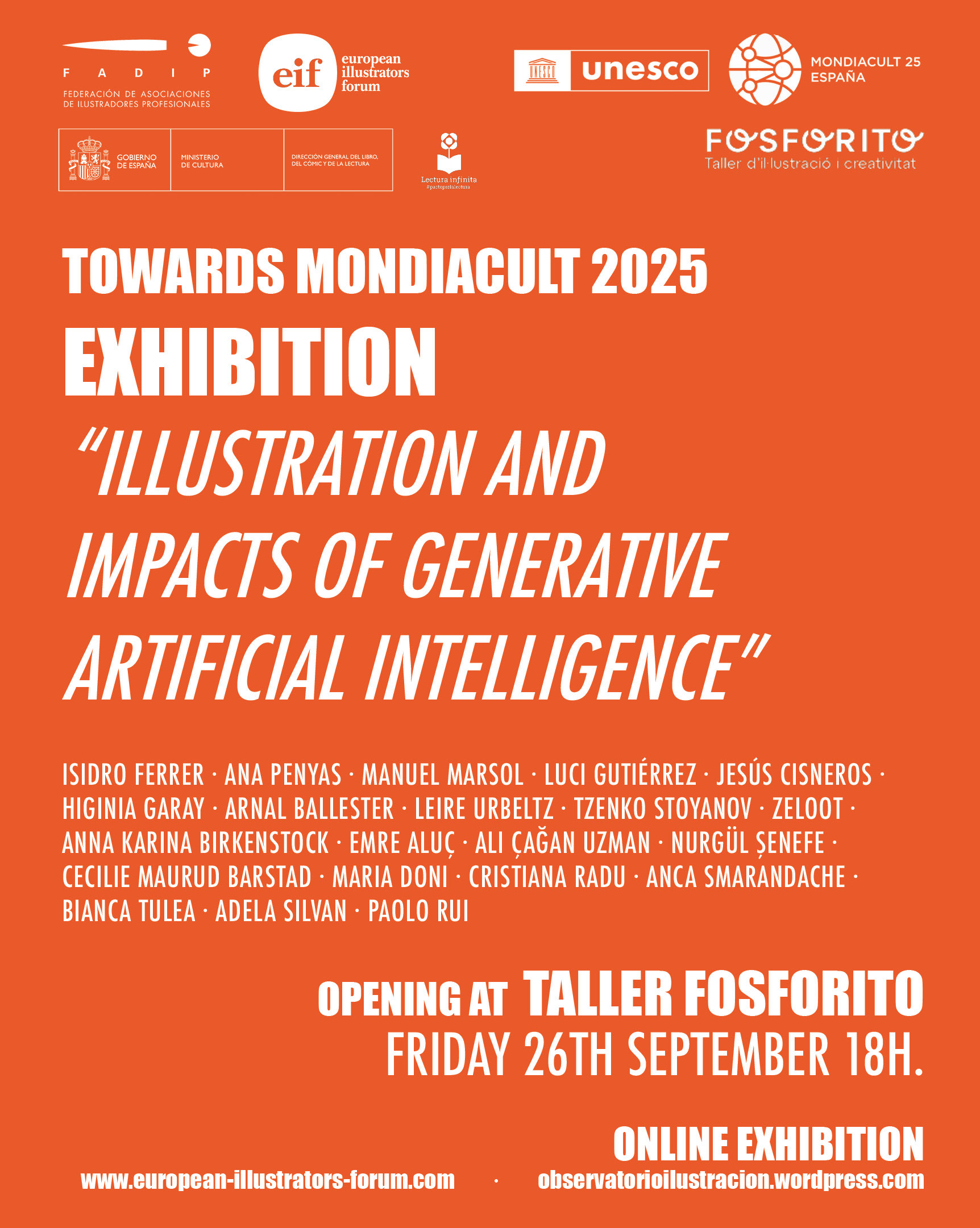 European Illustrators forum about the impact of generative IA on diversity, authorship rights, sustainability, mental health and economy.